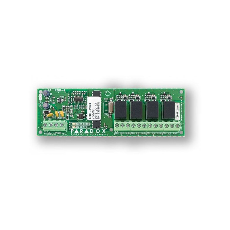 Modul PGM výstupů lze připojit na BUS sběrnice ústředen SP / MG / EVO. Modul slouží k rozšíření o 4 programovatelné výstupů v provedení relé, pomocí kterých lze ovládat další prvky systému (garážová vrata, zavlažování, klimatizace apod.) V systému DIGIPLEX EVO je počet instalovaných PGM modulů omezen maximálním počtem PGM výstupů (250).